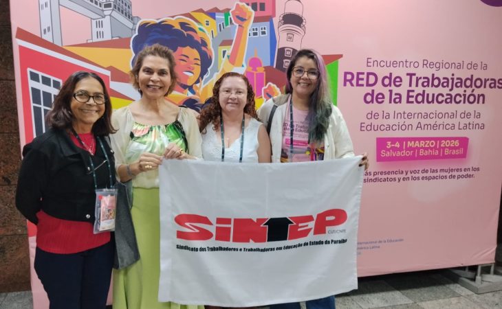 O Sintep-PB participou do Encontro Regional da Rede de Trabalhadoras da Educação da Internacional da Educação para a América Latina (Ieal), realizado em Salvador, entre os dias 3 e 4 de março. O evento reuniu lideranças sindicais, educadoras e representantes governamentais de diversos países para debater igualdade de gênero, combate à violência e fortalecimento da participação das mulheres nos sindicatos e na educação pública. Representaram o sindicato as diretoras Fernanda França e Simone Vieira, da Secretaria de Relações de Gênero, Etnia e Diversidade, além da diretora da 3ª Regional, Socorro Ramalho.